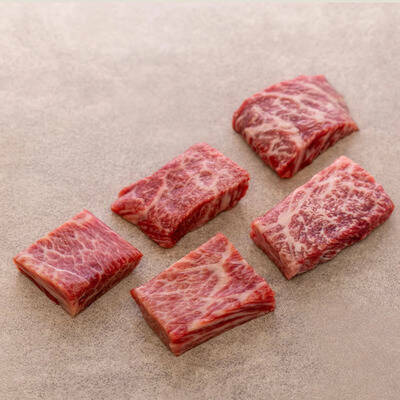 Unser Japanese Cut besteht aus kleinen, stark marmorierten Fleischstücken, inspiriert von der japanischen Teppanyaki-Tradition. Jeder Bissen liefert maximales Umami, eine butterzarte Textur und den typischen Wagyu-Schmelz, für den dieses Rind weltweit gefeiert wird.